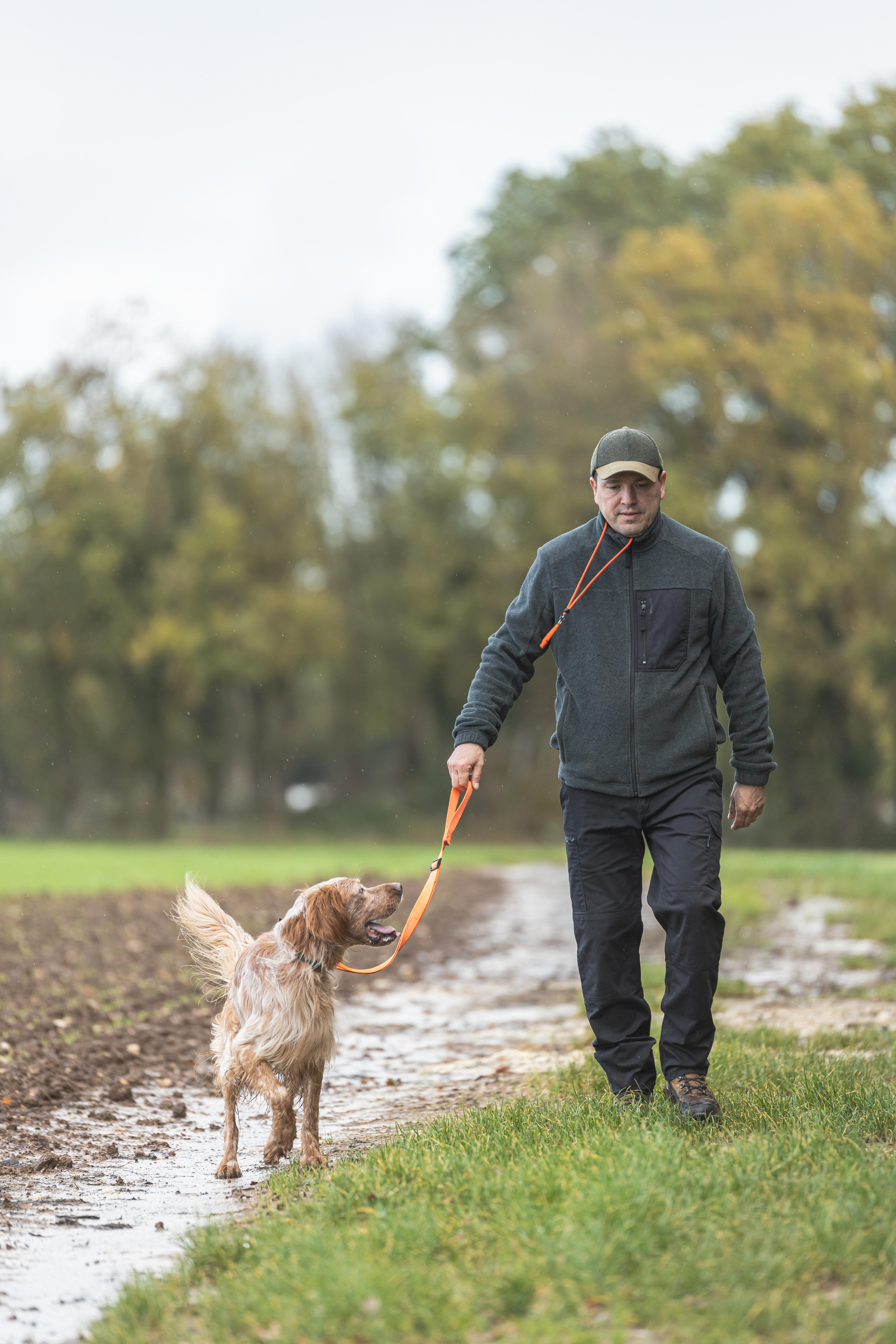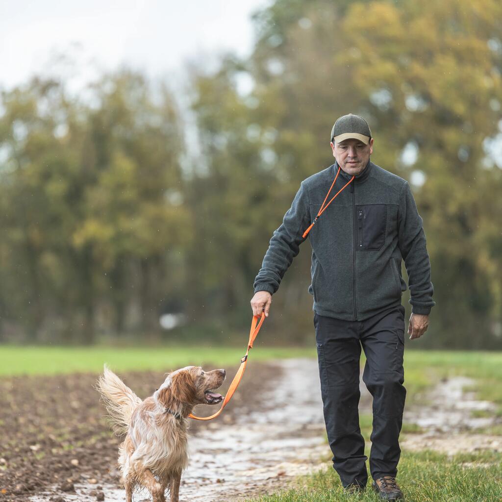 Cette laisse orange est résistante, ajustable et imputrescible.
