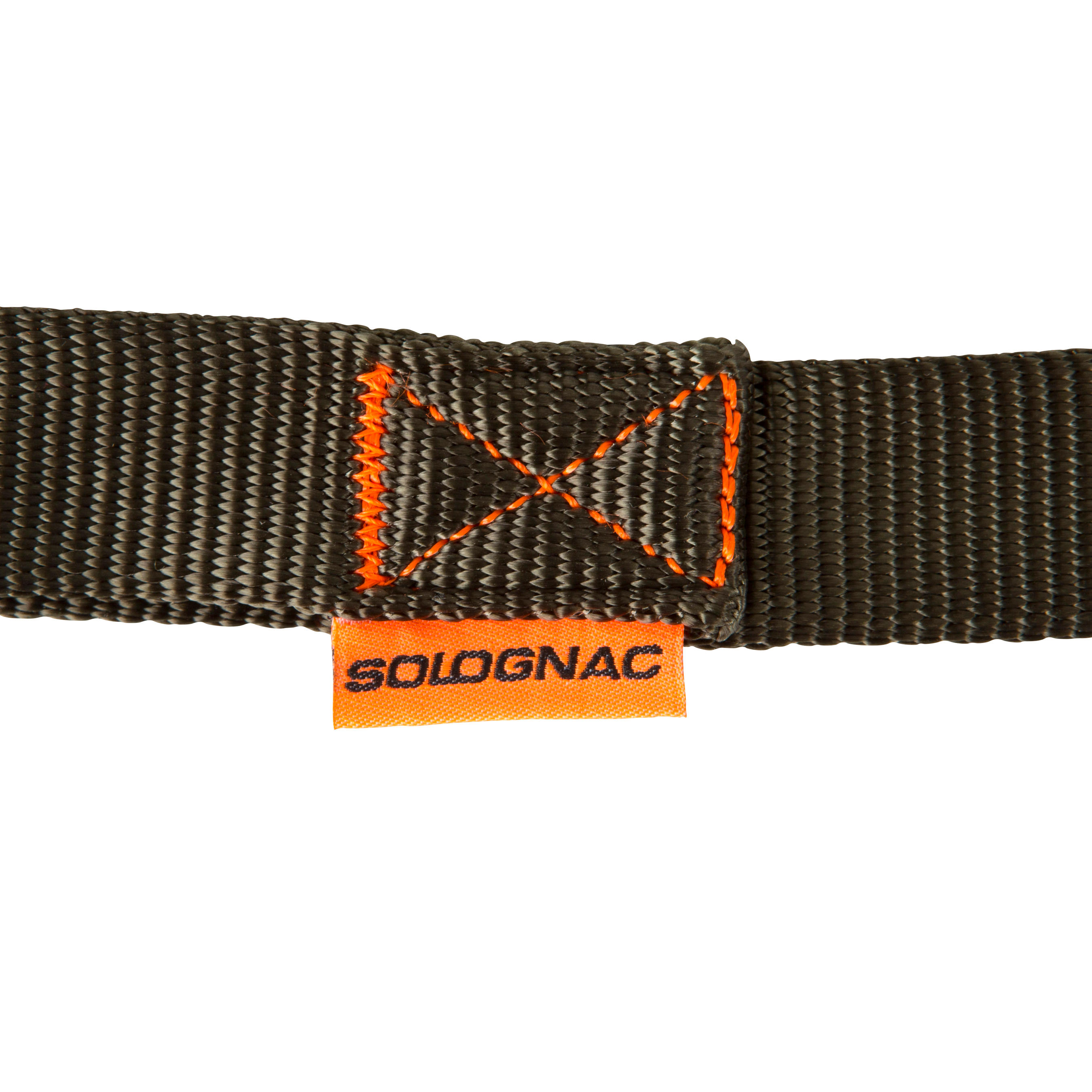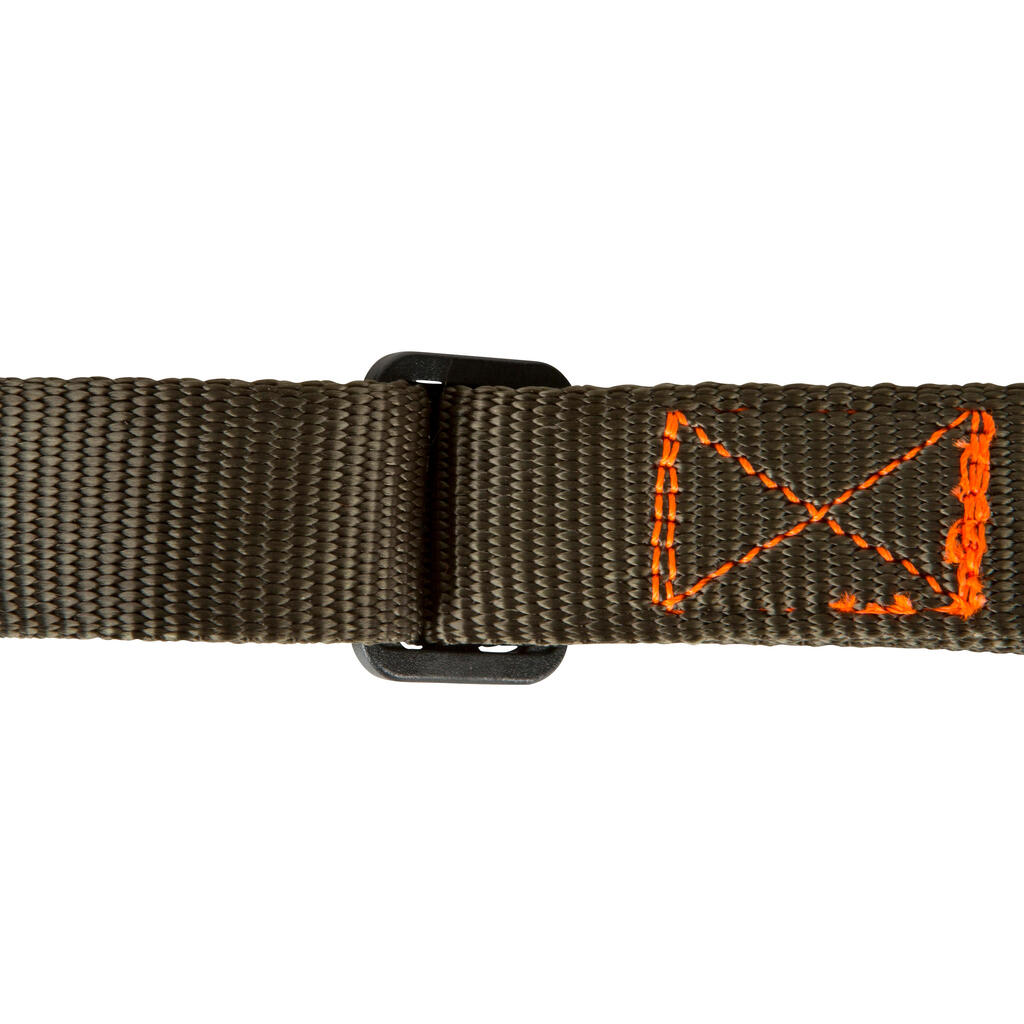 Cette laisse orange est résistante, ajustable et imputrescible.