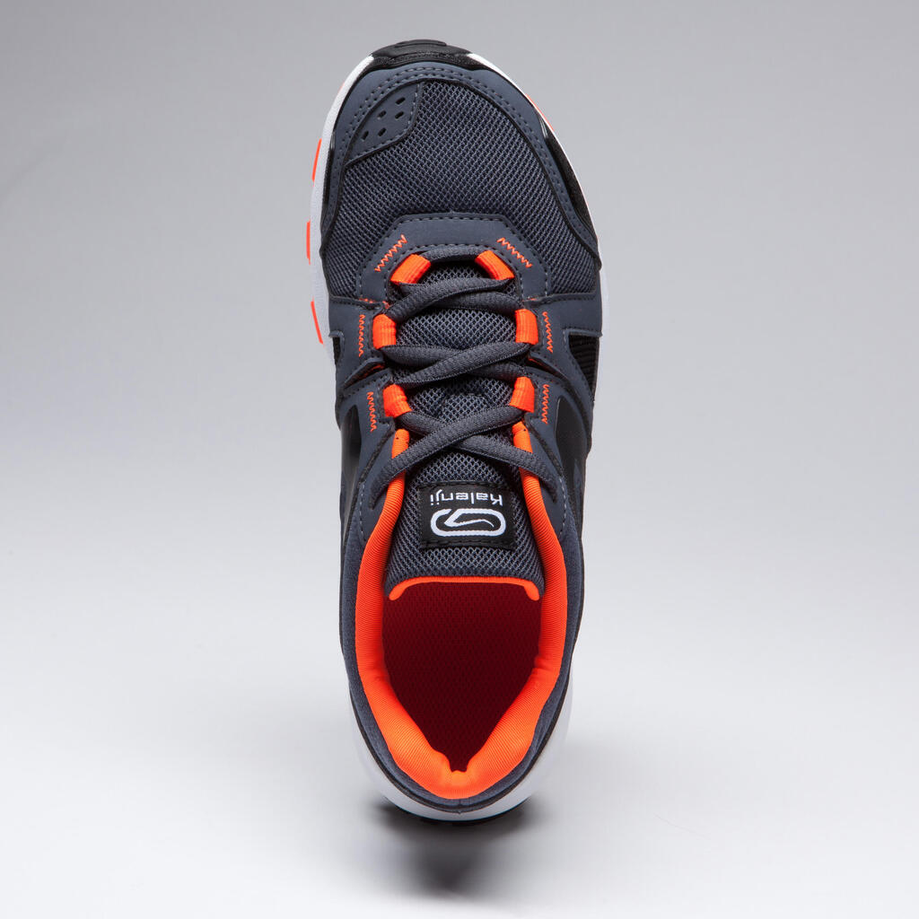CHAUSSURES RUNNING & ATHLÉTISME ENFANT KIPRUN GRIP GRISES ET NOIRES ORANGES FLUO