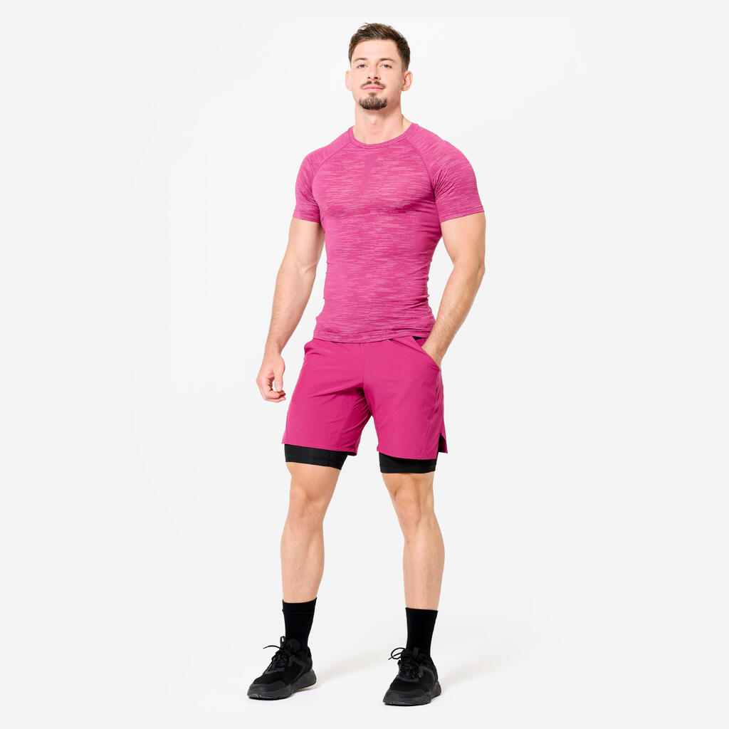 T-shirt de musculation compression manches courtes col rond homme, violet