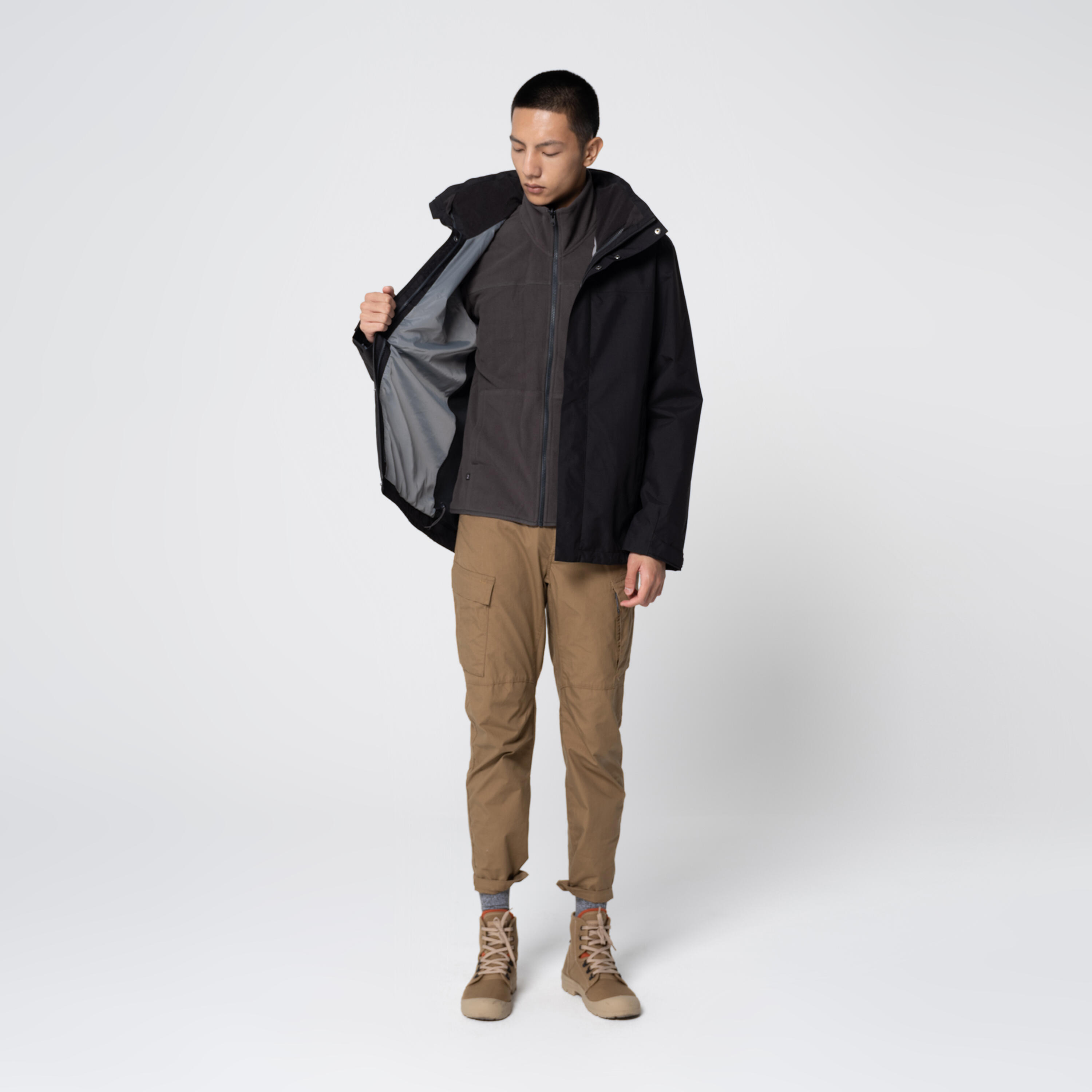 Veste 3en1 de randonnée 0°C imperméable homme, NH100 noir