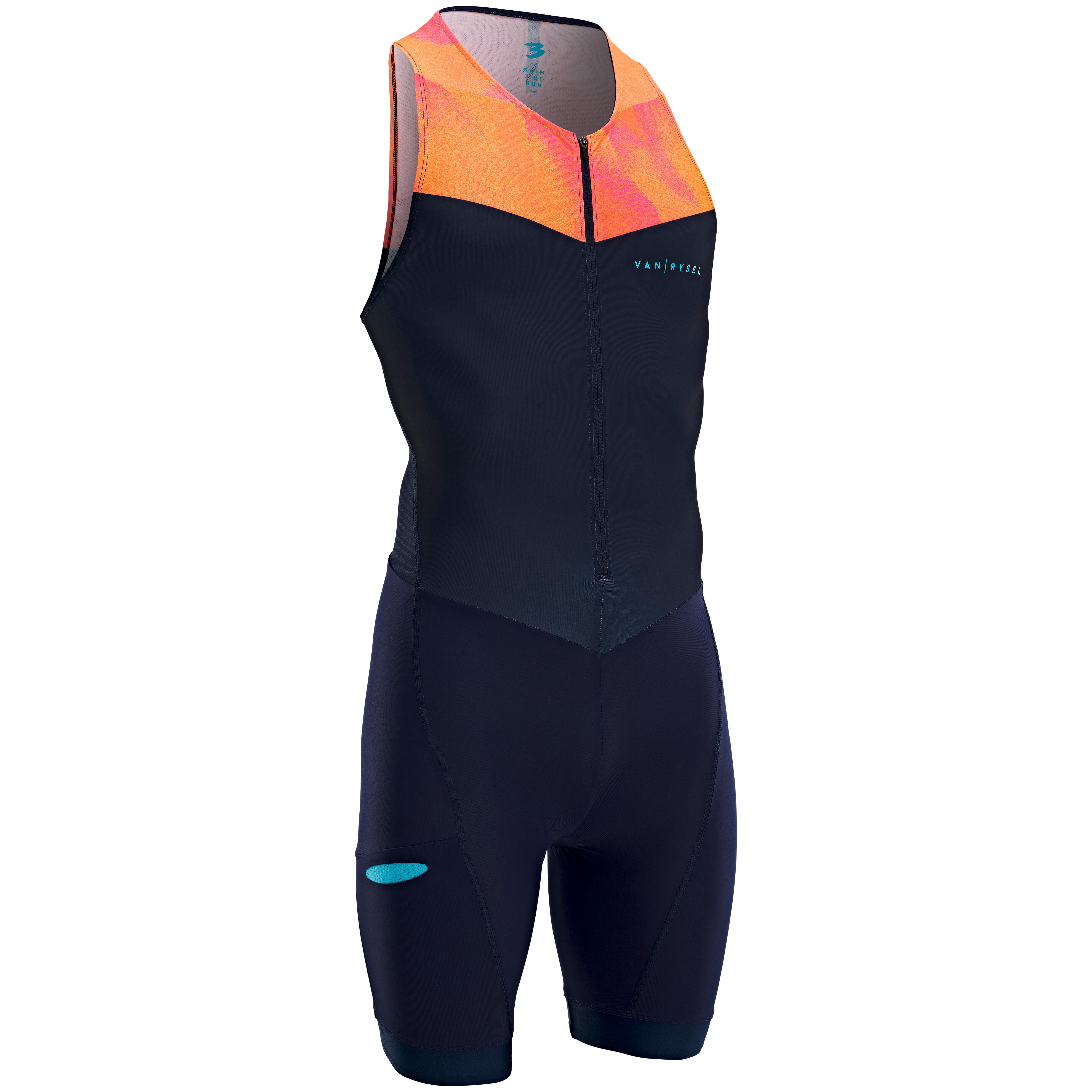 Pour rallier la ligne d'arrivée d'un triathlon courte distance (entre 1 et 3h d'effort), il faut penser à manger ! Cette trifonction dispose d'une poche accessible au niveau de la cuisse droite : plus besoin de tâtonner vos poches à l'aveugle à la recherche d'un ravitaillement, vous voyez tout ! Cette poche peut contenir jusqu'à 2 produits barres et/ou gels et est thermoformée : sans couture, ni fermeture, elle ne se sent pas, et les produits qui s'y trouvent sont en tension et ne bougent pas.