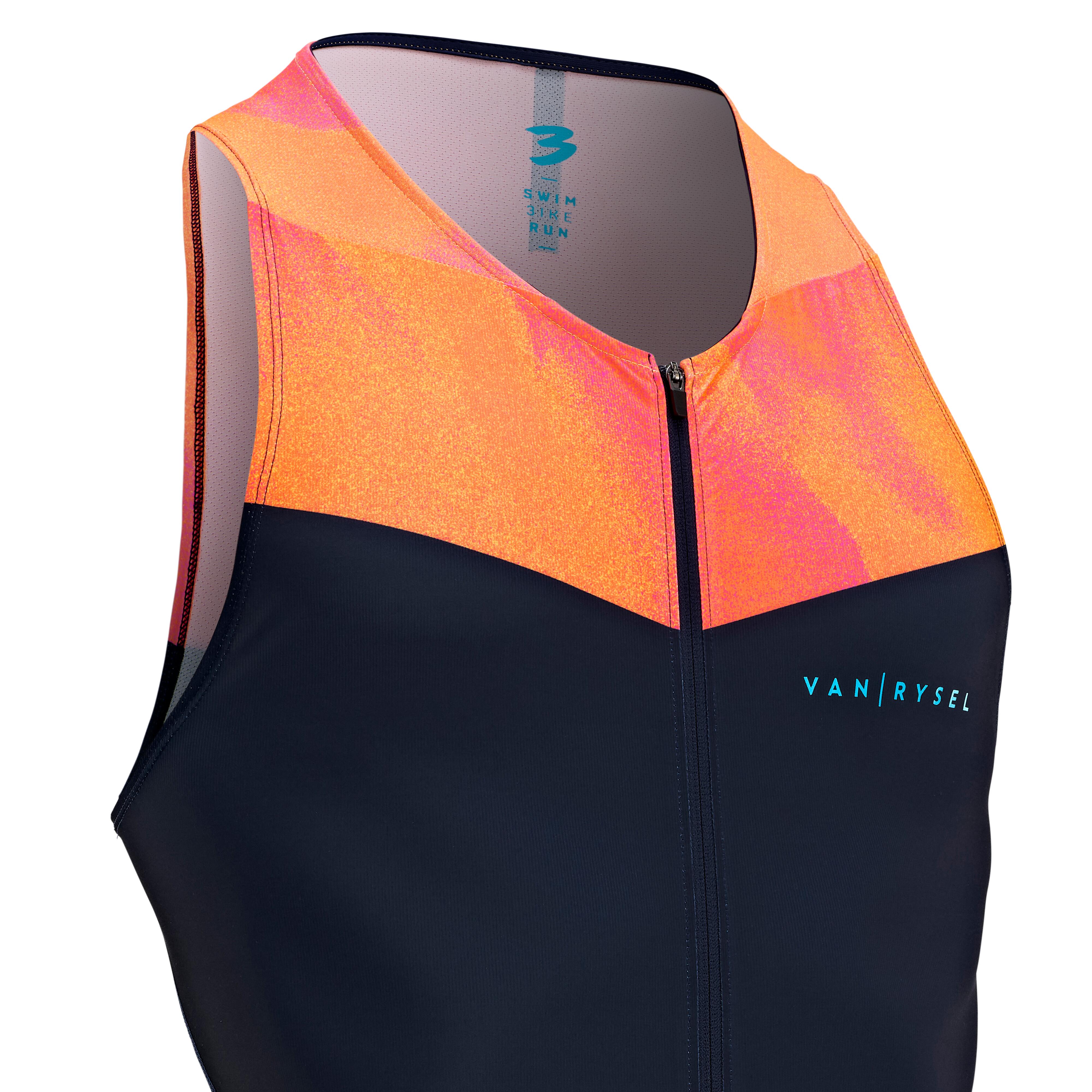Globalement, la matière utilisée pour cette trifonction est plus légère sur le haut et est pourvue d'un peu plus de maintien sur le bas. Sans vous comprimer, cette dernière vous assure tout le maintien nécessaire à une pratique naturelle et confortable. La mousse interne, quant à elle, suit parfaitement votre morphologie masculine.