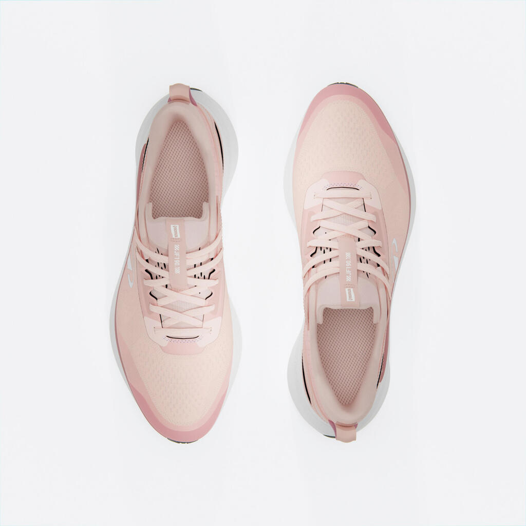 Nos équipes de conception ont développé cette chaussure de running femme légère et amortissante pour vos sorties course à pied jusqu'à 20 kms par semaine.