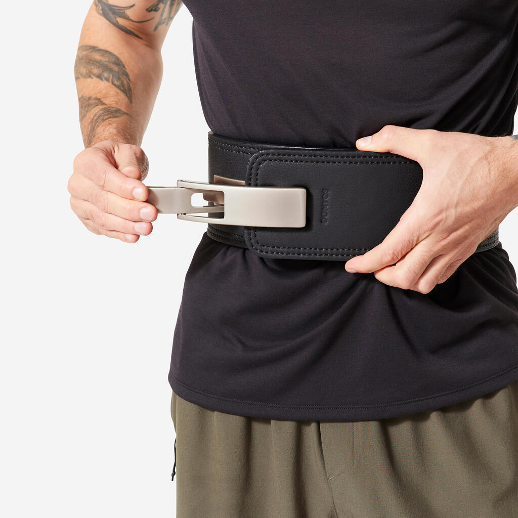 Le levier, c'est la puissance instantanée ! En un seul geste, obtenez un ajustement parfait sans effort. Ce système assure un maintien optimal pour les charges lourdes, particulièrement crucial pour vos les séries de 1 à 4 répétitions. Certes, le mécanisme est plus imposant qu'un simple velcro, mais le jeu en vaut la chandelle : quand chaque répétition compte, son maintien supérieur fait toute la différence !