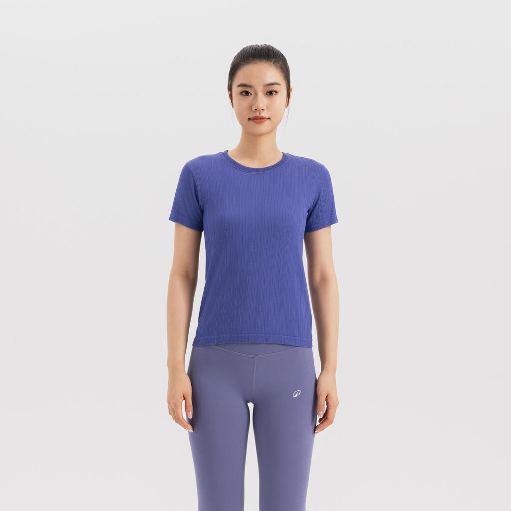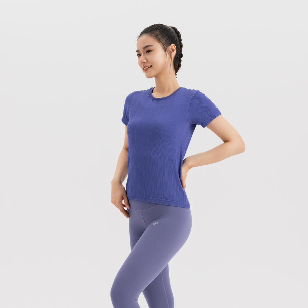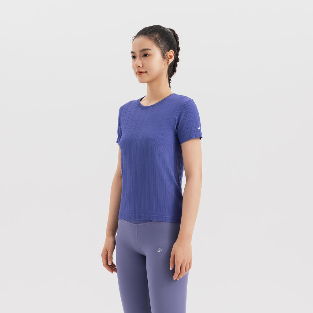 Un t-shirt sans couture fabriqué en fibre Ecovero garantissant une bonne respirabilité et une bonne élasticité pour la pratique du yoga.Le t-shirt réduit les frottements liés à la pratique du yoga.
